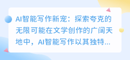 在文学创作的广阔天地中,AI智能写作以其独特的魅力和无限的可能,正逐渐成为文学领域的新宠。夸克,这一AI写作工具,更是凭借其卓越的性能和创新的理念,引领着智能写...