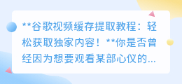 **谷歌视频缓存提取教程:轻松获取独家内容!**