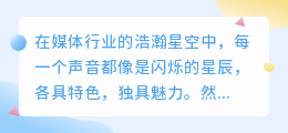 到此这篇关于《智能配音全攻略:热门方法与技巧一网打尽,轻松搞定专业级配音!》的文章就介绍到这了,更多新媒体运营相关内容请浏览媒小三以前的文章或继续浏览下面的相关文章,希望大家以后多多支持媒小三 - 新媒体工具网!