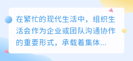 组织生活会AI写作:智能助力,提升会议效率与深度!